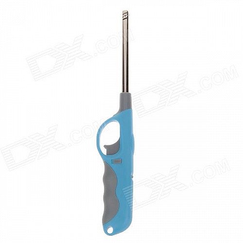 Adjustable Orange Flame Gas Lighter w/ Long Mouth - Blue + Gray