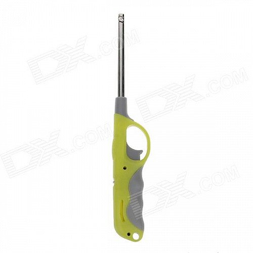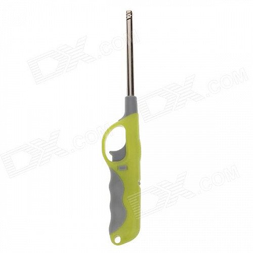 Adjustable Orange Flame Gas Lighter w/ Long Mouth - Green + Gray