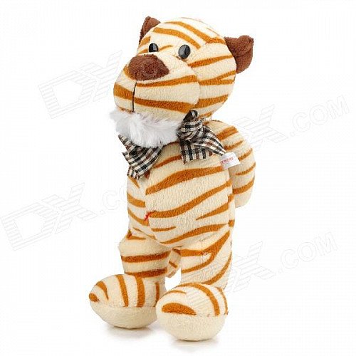Bow-tie Tiger Gentleman Plush Doll Toy - Brown + Beige + White