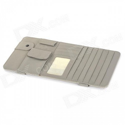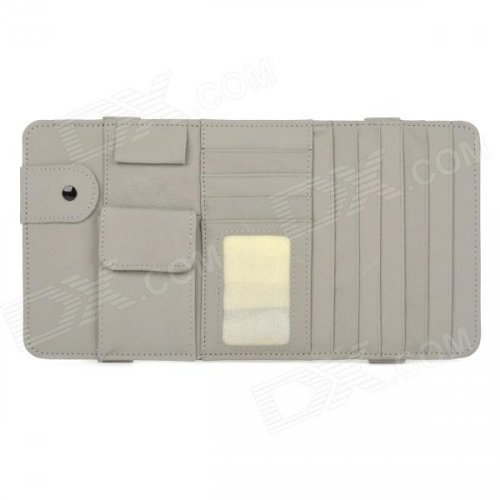 CDY Leather Car Sun Visor Hanging Type CD Card Holder Clip - Grey