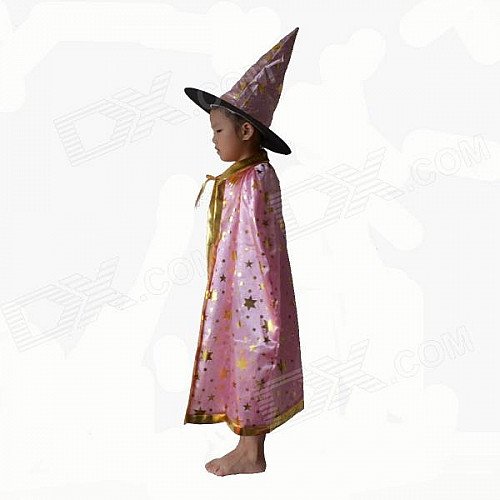 Children's Satin Cloak Costume w/ Hat for Halloween - Pink + Golden (Size-L)