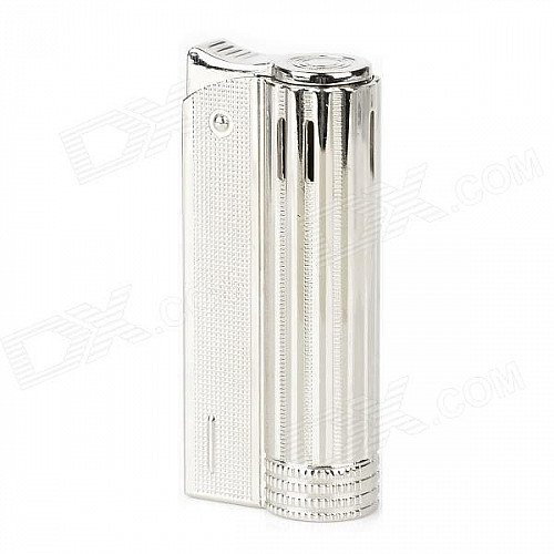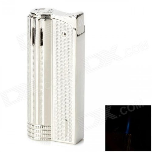 Classic Nostalgic Windproof Blue Flame Butane Gas Jet Lighter - Silver