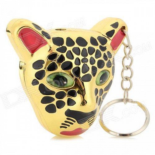 Creative Leopard Head Butane Zinc Alloy Lighter w/ Chain - Golden