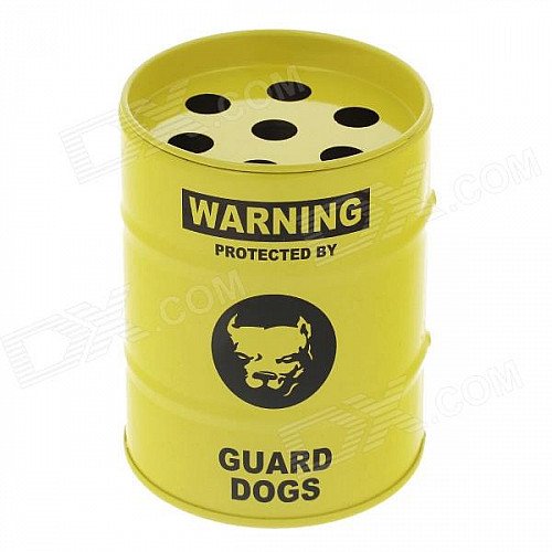 Creative Oil Drum Shaped Guard Dog Stainless Steel Ashtray / Pen Holder - Yellow + Black