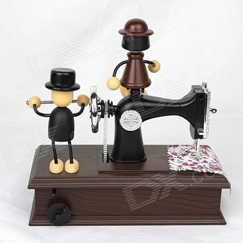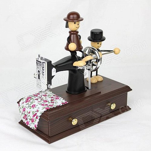 Cute Dolls Sewing Machine Style Music Box - Black + Brown