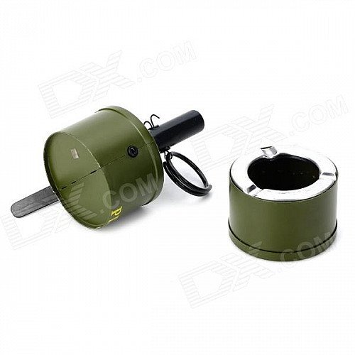 Cylindrical Butane Torch Lighter w/ Ashtray - Army Green