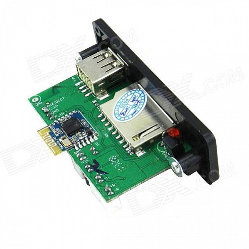 | Other Features | Support of extracellular signal switch directly; Support bluetooth 3.0 EDR; Support USB / SD / bluetooth / FM / LINE switch automatically; Module containing MP3/WMA music decoder chip; Support USB, SD, MMC card for playback; Support USB / SD card switch, the song, the next song, fast forward, rewind, adjust volume, EQ, play / pause, stop, single repeat, mute, shutdown, elections songs; Support bluetooth previous song, next song, adjust volume, EQ, play / pause, mute, shutdown; Support FAT16, FAT32 file system; Support MP1 Layer3, MP2 Layer3, MP3 Layer3 version of the song; Support 32-320kbps MP3 songs; Support power-off memory function: song played before the power failure memory and volume; |