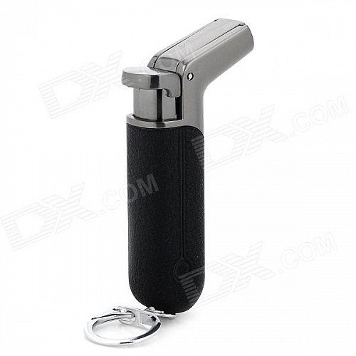 DS-01 Windproof Dual Blue Flame Butane Gas Lighter w/ Keyring - Black