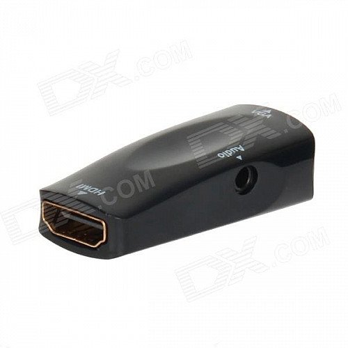 E-129 HDMI Female to VGA Female and Audio Adapter w/ 3.5mm Port - Black