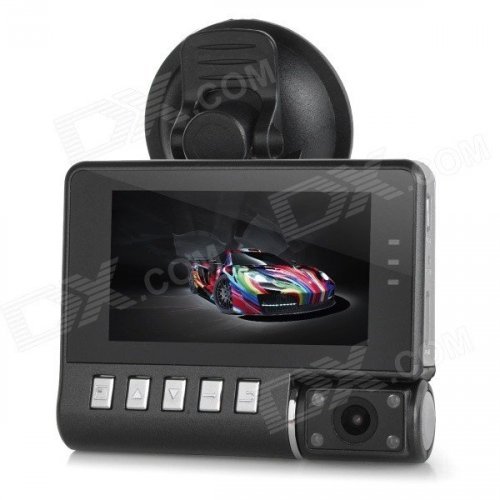 E1000 Multifunctional 2.5" TFT CMOS 180' Wide-Angle Night Vision HD Rotary Car DVR Camcorder - Black