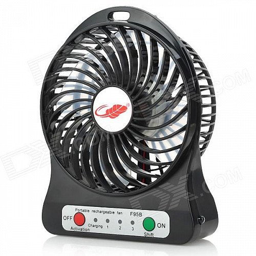 F95b Portable Mini USB / AC Power 4-Blade 3-Mode Fan - Black (1 x 18650)