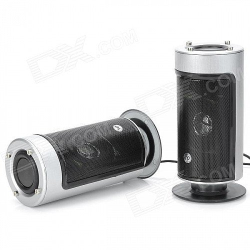 Fashion 2W + 2W USB Powered Speakers - Silver Grey + Black (2 PCS)