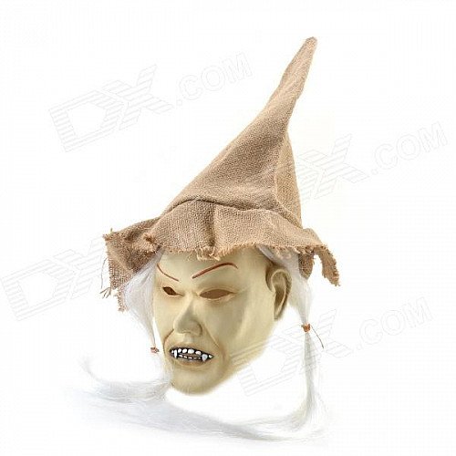 Halloween Hatted Gray-face Witch Mask - White + Brown + Gray