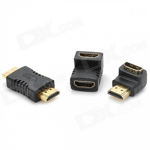HDMI Male to Female + HDMI Male to Male + HDMI Female to Female Adapters - Black + Golden (3 PCS)