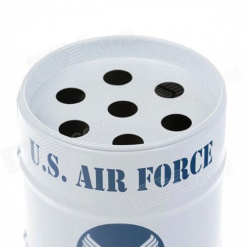 Oil Drum Shaped U.S.AIR FORCE Pattern Stainless Steel Ashtray / Pen Holder - Blue + White