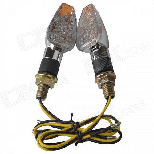 LED steering yellow lights for your motorcycle. Universal fit; Flexible and small size is perfect for dual sport applications or any street motorcycle. Each has ultra bright 15 amber LED for maximum visibility.