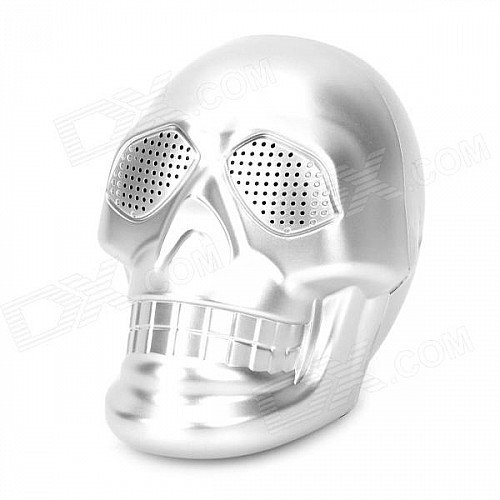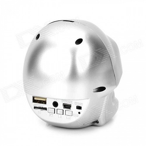Skull Style Mini 3W Stereo Speaker w/ USB / TF / FM / 3.5mm for Laptops / MP3 + More - Silvery White