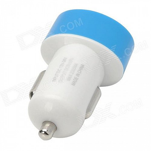 USB Car Cigarette Lighter Power Adapter for Iphone / Samsung / HTC / Nokia - White + Blue