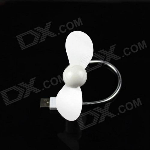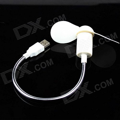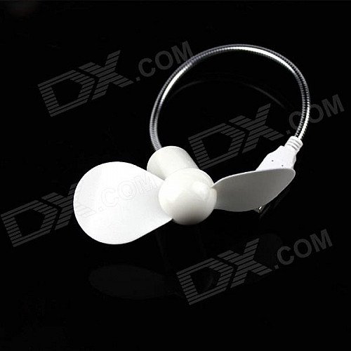 USB Powered Flexible Neck 2-Blade Fan - White + Silver