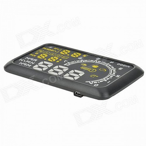 Multi-functional HUD product developed based on OBD II interface; Has good cost-performance ratio; Easy nstallation and debugging within 3 minutes; Plug and play: HUD can auto adapt to vehicle type which is in line with OBD II or EU OBD (On-Board Diagnostic System); Comprehensive display: HUD can display many parameters at the same time as follows: vehicle speed / engine speed / water temperature (voltage, throttle valve position, ignition advance angle, time of 100 km acceleration), fuel consumption, mileage, low fuel tips, engine failure; Diversiform display mode: Driver can chose normal display mode, high- speed display mode and automatic display mode; Free switch: Km and mile can be switched freely to meet the need of inch auto meter; Suitable size: 5.5" display which is very clear for driver to read data; Automatic power on and off: starting with the vehicle starting, stopping with the vehicle stopping to protect the vehicles battery. Moreover, we pre- serve the hand switch function to control the HUD; Flexible alarm mode: HUD can offer single-stage and four-stage over speed alarm modes to choose to make driving safer; Engine speed alarm: it contributes to shift gear in time to save fuel;