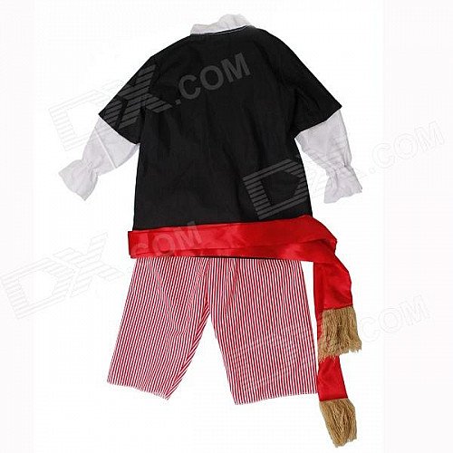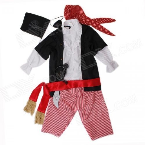 Others This Cosplay children pirate clothes set for Halloween includes: jacket, trouser, knife, kerchief, belt, flag; You will become very fashionable with this set. It is the latest dressing clothes for Halloween costume party.