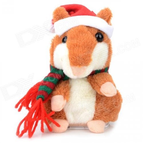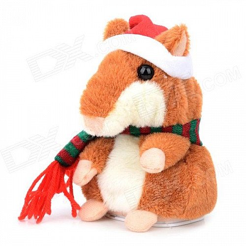 YSDX-901 Christmas Plush Hamster Talking & Wagging Toy - Brown (3 x AAA)