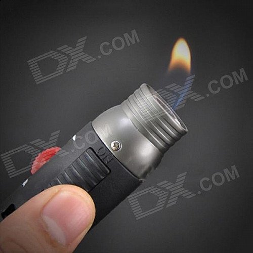 Zinc Alloy Windproof Straight Flame Butane Gas Lighter - Black