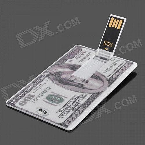 100 US Dollar Style USB Flash Drive - White + Grey (8GB)