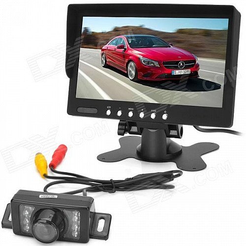 Car 7" LCD Rearview Monitor + E350 CMOS Camera w/ 7-LED Night Vision - Black