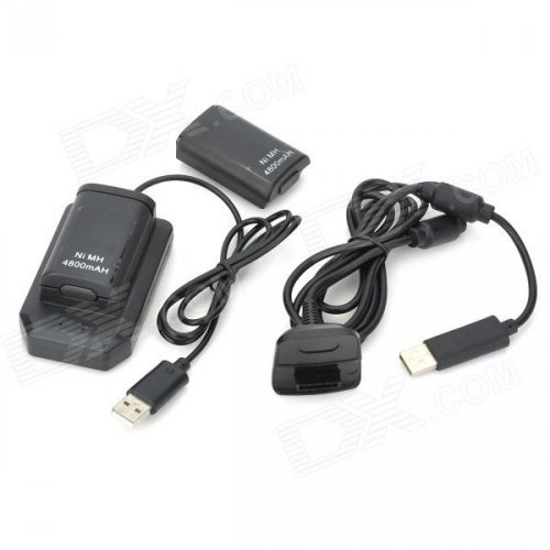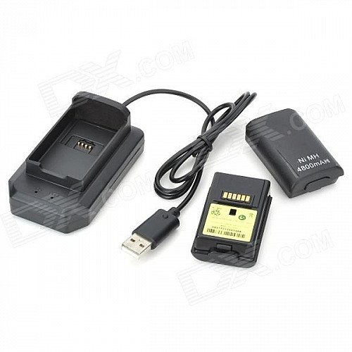 Dual 3.6V "4800mAh" Battery Packs w/ USB Charging Cradle / Cable for Xbox 360 Wireless Controller