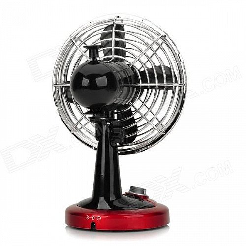 Head-Shaking USB Powered 2-Mode 4-Blade Mini Fan - Silver + Black + Red (4 x AA)