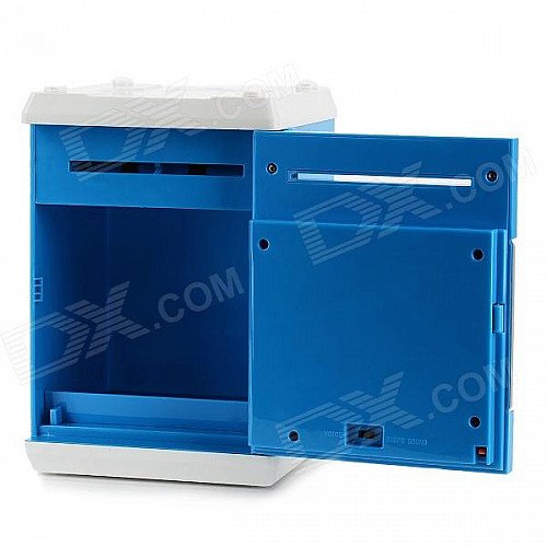 Mini 4-digit PIN Combination Safe Coin Bank - Blue + White (3 x AA)
