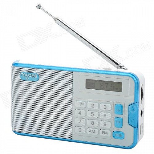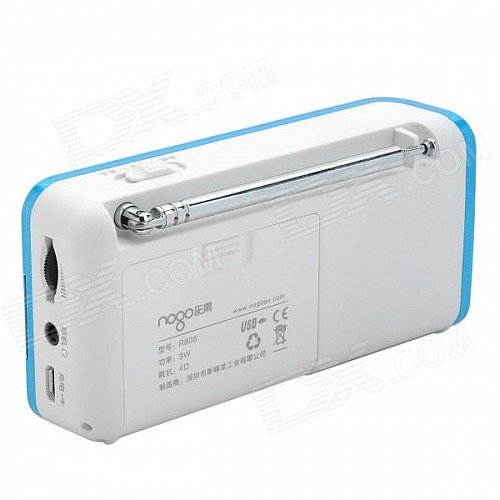NOGO R808 Portable 1.2" LCD FM / AM Radio / MP3 Player w/ Micro USB / 3.5mm / TF - White + Blue