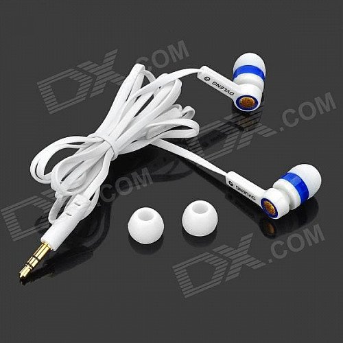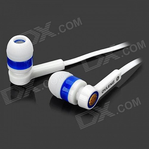 OVLENG OV-K284MP Stylish In-Ear Flat Earphones - White + Blue + Golden (3.5mm Plug / 126cm)