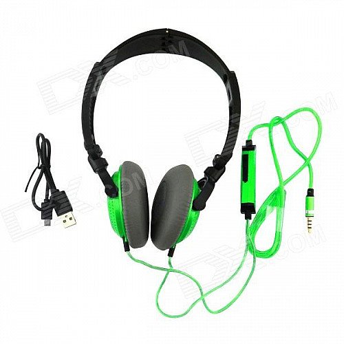 Power4 HP002 Hi-Fi Lighting Stereo Headband Headphone w/ Microphone / Remote - Green