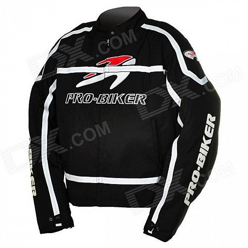 Pro-biker JK-05 Professional Polyester Motorcycle Riding Race Jacket - Black + White (Size L)