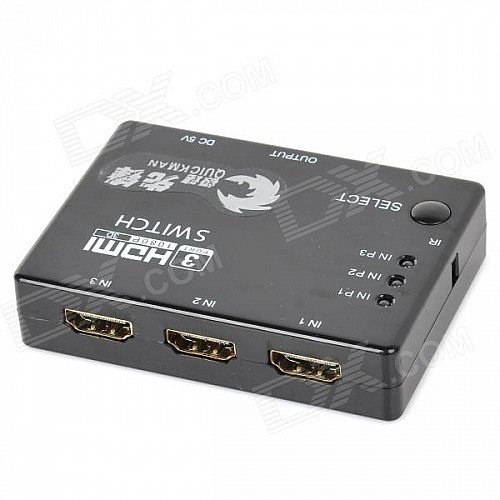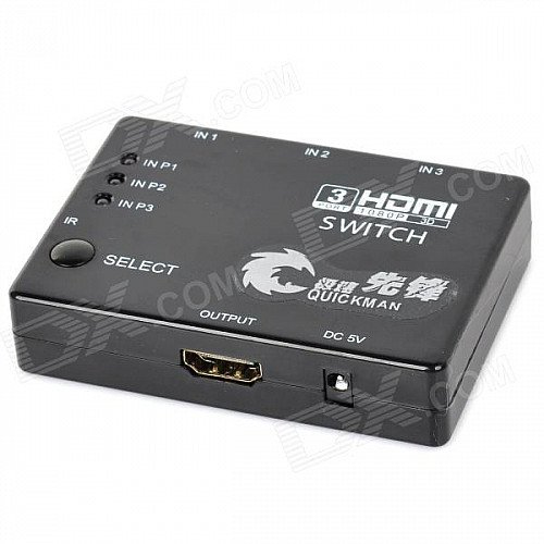QUICKMAN RM301 3 In 1 Out 1080P HDMI Switch / Splitter w/ Remote Control - Black