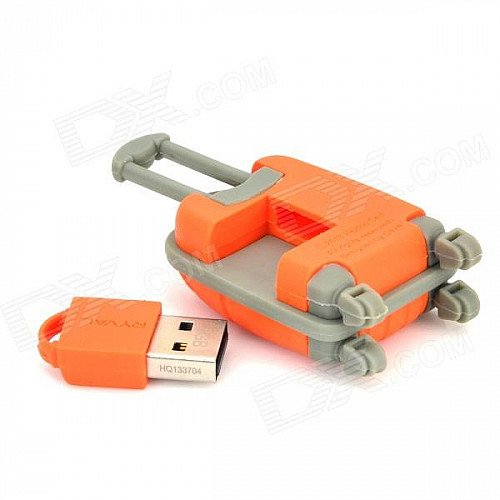 RYVAL Cute Luggage Style Water Resistant USB Flash Drive - Orange + Grey (8G)