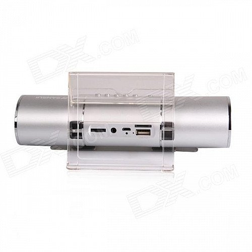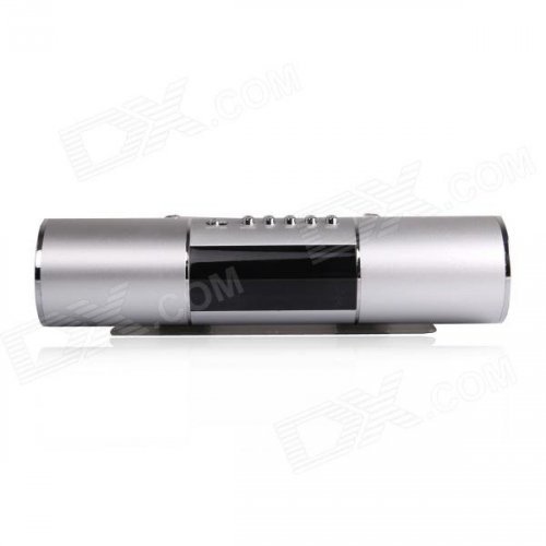 SANSUI E19 Bluetooth V2.1 2'' Screen Bass MP3 Speaker w/ TF / FM / Alarm Clock / Mic. / USB - Silver