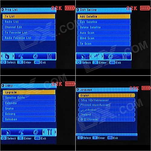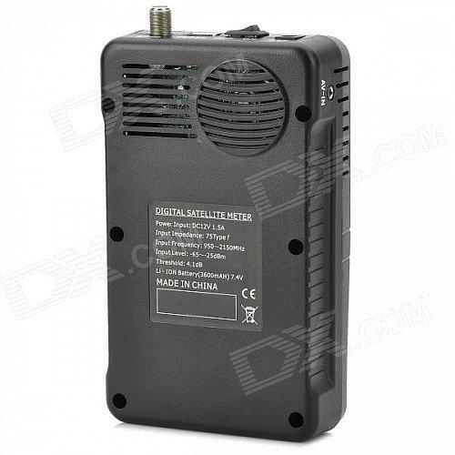 | Packing List | 1 x Satellite finder 1 x 232 cable (100cm)1 x English user manual 1 x AV cable (23cm)1 x Car charger (12~24V / 130cm)1 x 2-flat-pin plug power adapter (100~240V / 134cm) |