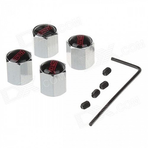 YONGXUN Universal Fashionable Aluminum Alloy Car Tire Valve Caps - Silver + Black + Red (4 PCS)